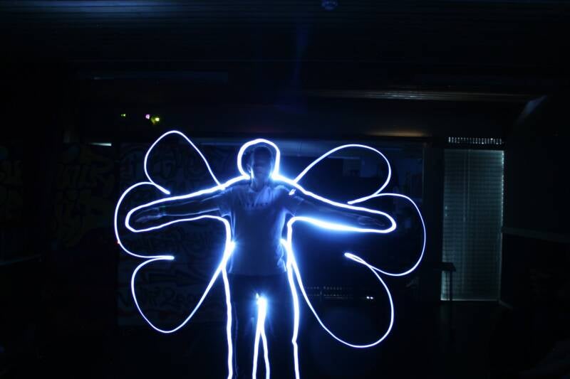 De workshop maakt gebruik van een vertraagd mechanisme in fotografie om lichtbundels vast te leggen. Dit zorgt voor indrukwekkende beelden die de creativiteit van de deelnemers perfect vastleggen.
